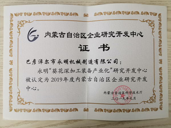 永明機械被自治區(qū)政府、科技廳認(rèn)定為自治區(qū)企業(yè)研究開發(fā)中心,并獲批為自治區(qū)高新技術(shù)企業(yè)。這兩項榮譽的獲取,證明了永明機械在技術(shù)領(lǐng)域的投入與突破。
