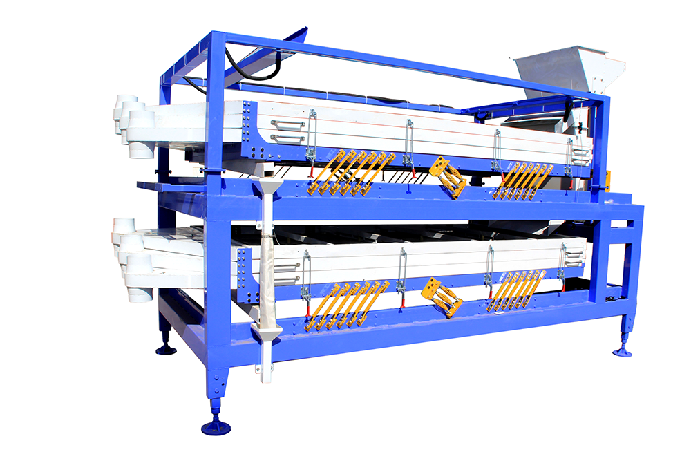 行進(jìn)行分級(jí),同時(shí)去除過大和過小雜質(zhì)。篩網(wǎng)口徑大小,篩層數(shù)量和材質(zhì)均可定制,從而達(dá)到分級(jí)且廣泛應(yīng)用的效果。該產(chǎn)品可安裝在色選機(jī)后,進(jìn)行質(zhì)量把控;或安裝在脫殼機(jī)前,進(jìn)行基礎(chǔ)分級(jí)。該機(jī)設(shè)計(jì)合理,結(jié)構(gòu)緊湊,是目前理想的顆粒分級(jí)設(shè)備。